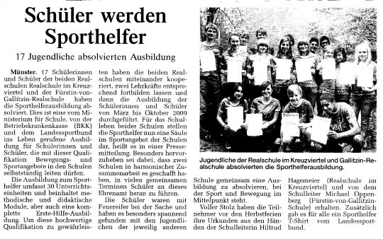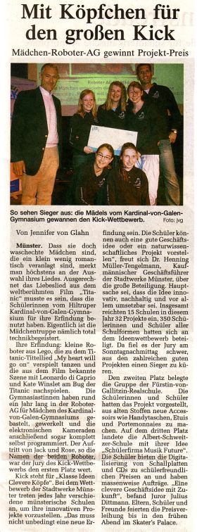 Unsere Schülerinnen gewinnen beim Kick-Projekt der Stadtwerke Münster den 2. Preis in Höhe von 1.000 €; Bericht Westfälische Nachrichten vom 01.06.2010